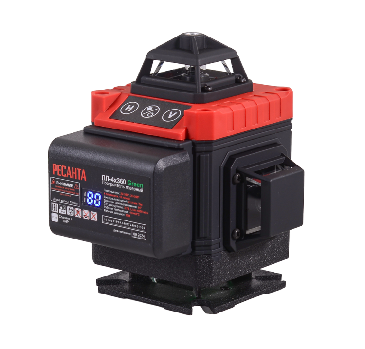 Построитель лазерный ПЛ-4Х360ШС Green Ресанта - измерительный прибор, который позволяет выполнять измерительные задачи в строительстве: построение горизонтальной и вертикальной плоскостей для выверки и контроля правильности взаимного расположения плоскостей, установки угла в 90 градусов между плоскостями. Прибор позволяет контролировать неровность поверхности относительно горизонта и перпендикулярной плоскости.