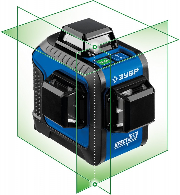 Зеленый лазерный нивелир Зубр КРЕСТ 3D [34909]