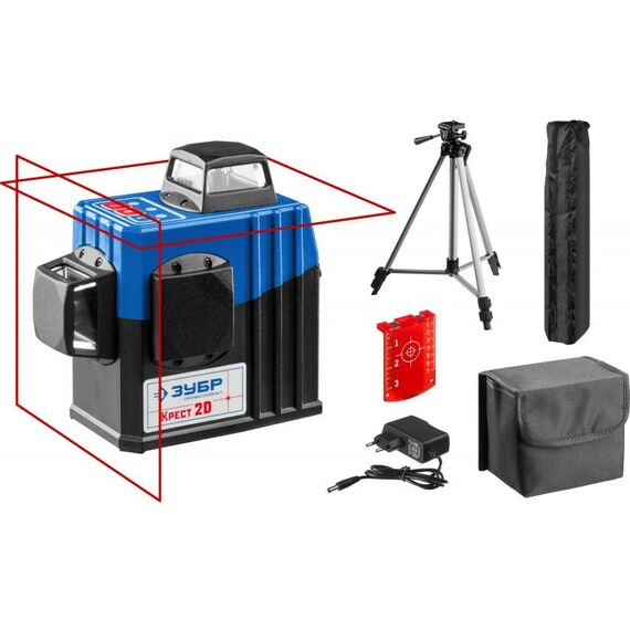 Нивелир лазерный Зубр КРЕСТ 2D №2 2х360°, 20м/70м, точн. +/-0,3 мм/м, штатив [34907-2]