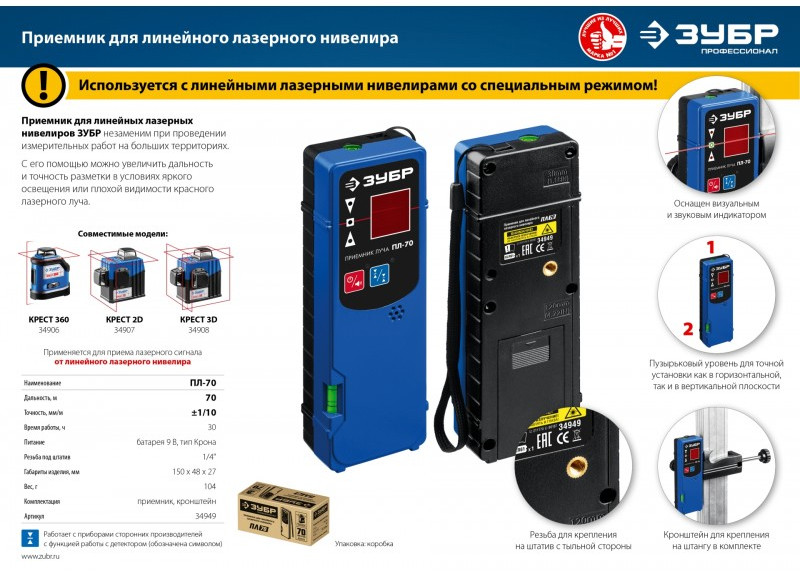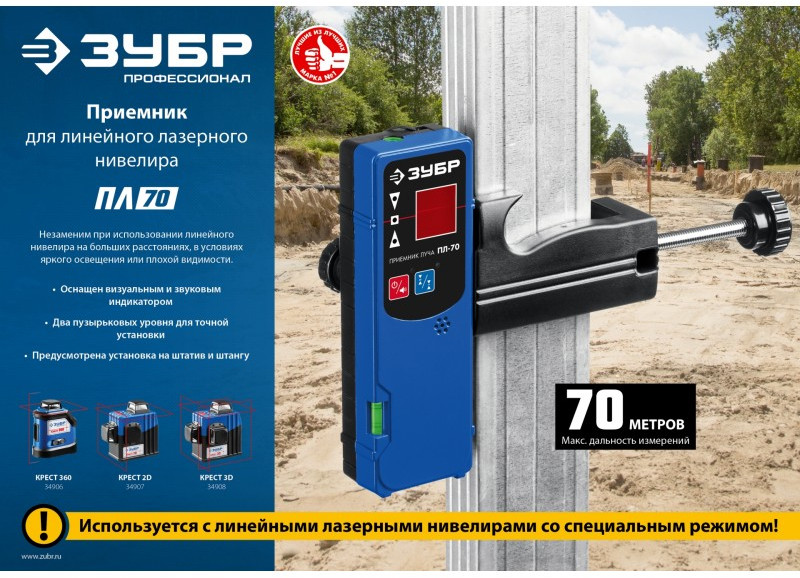Приемник для линейного нивелира Зубр ПЛ-70 [34949]