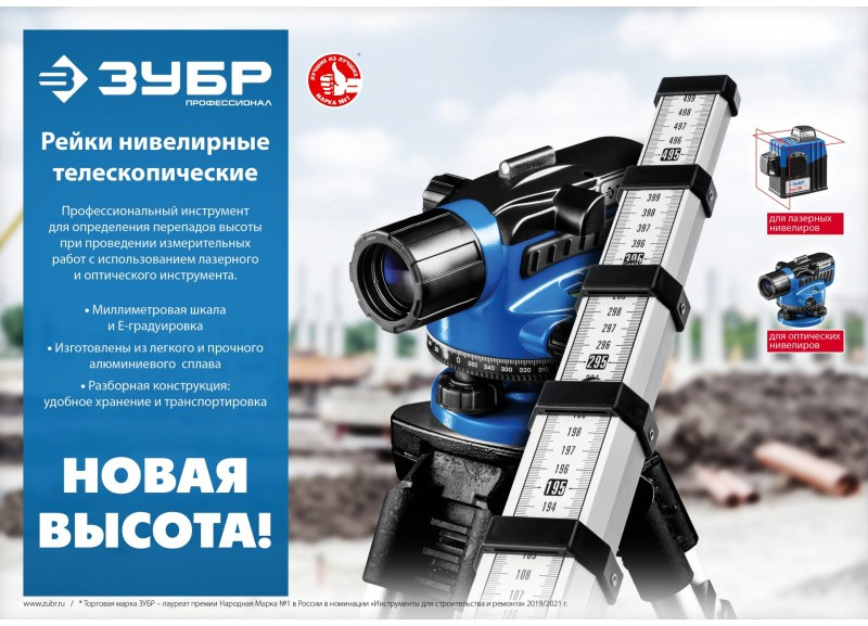 Профессиональный инструмент для работы с лазерным, оптическим инструментом для определения перепадов высоты. Имеет миллиметровую шкалу и E-градуировку .