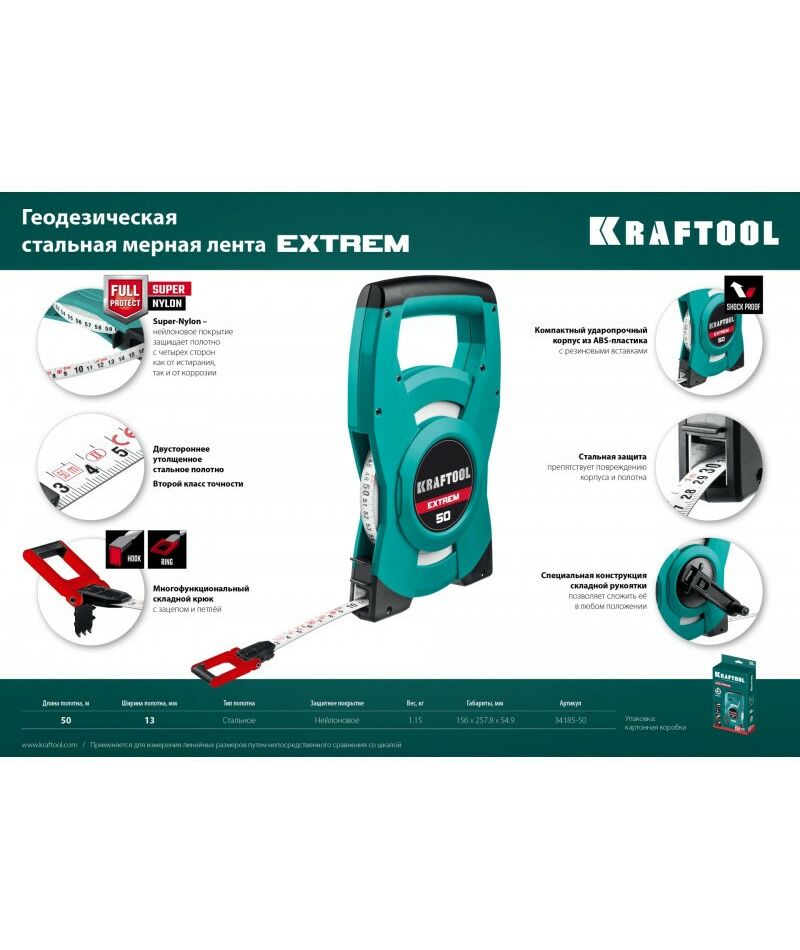 Геодезическая стальная мерная лента KRAFTOOL EXTREM 50 м [34185-50]