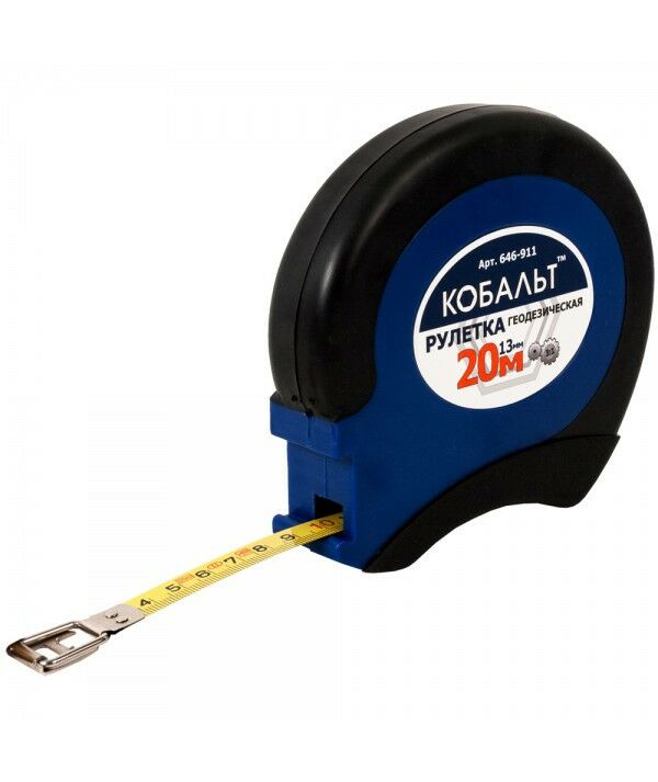 Рулетка геодезическая Кобальт 646-911 20м x 13мм закрытый двухкомпонентный корпус, стальная лента, ускоренная перемотка