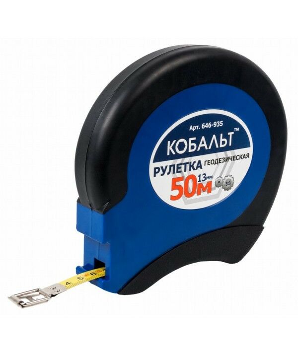 Рулетка геодезическая Кобальт 646-935 50м x 13мм, закрытый двухкомпонентный корпус, стальная лента, ускоренная перемотка