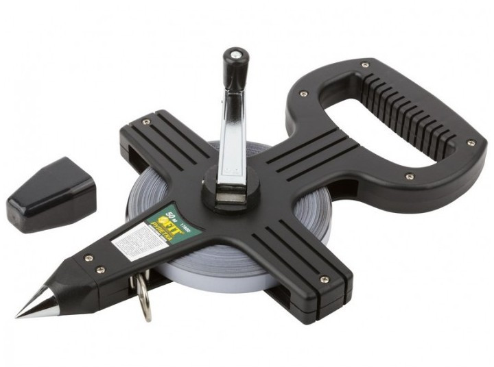 - Со штыком для фиксации рулетки в земле при измерении больших длин