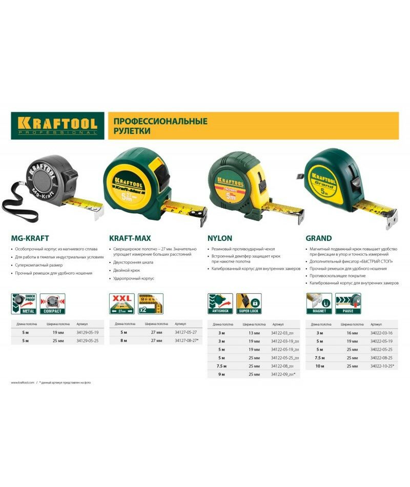 Наличие товара KRAFTOOL GRAND 10м / 25мм