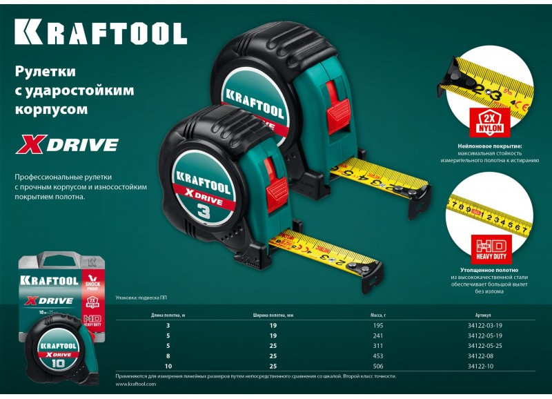 Описание KRAFTOOL X-Drive 10м / 25мм