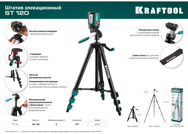 Штатив элевационный KRAFTOOL ST 120 [34712]