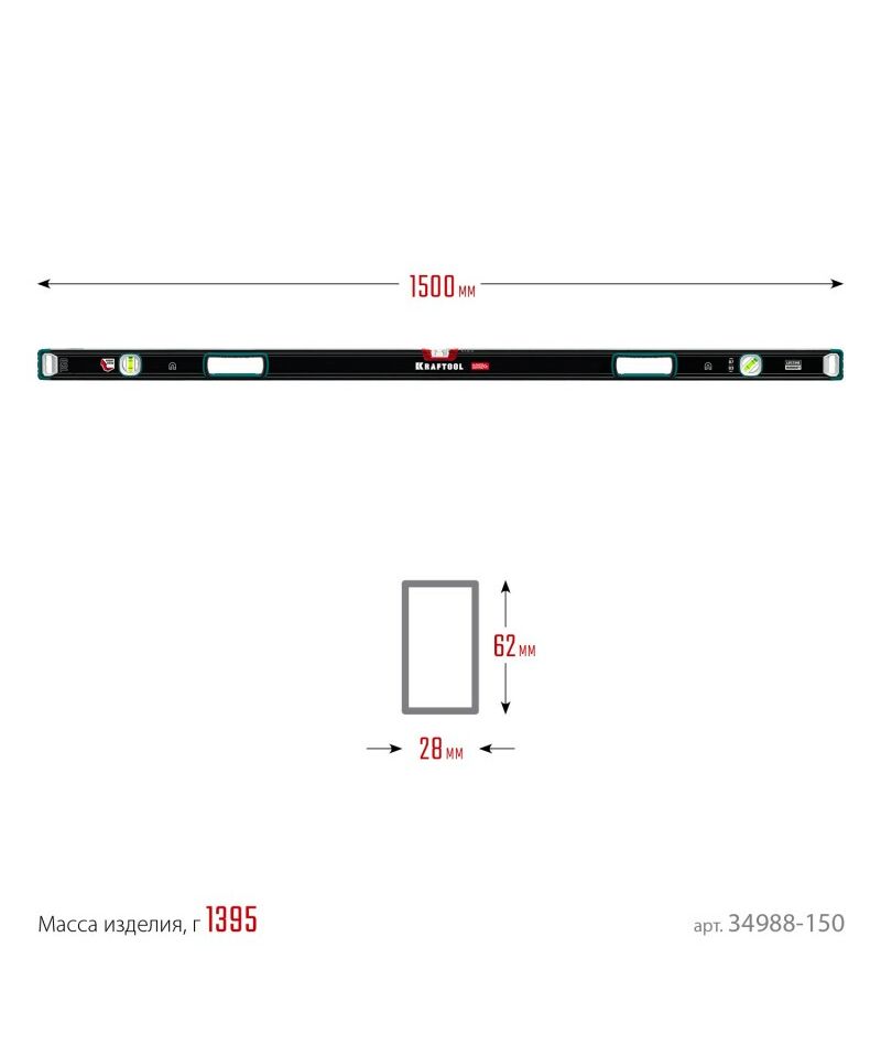 Сверхпрочный магнитный уровень KRAFTOOL A-RATE CONTROL 1500 мм точность 0.3 мм/м, с зеркальным глазком [34988-150]