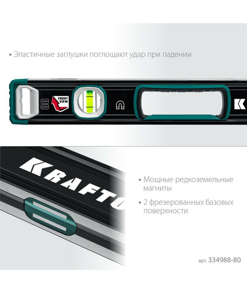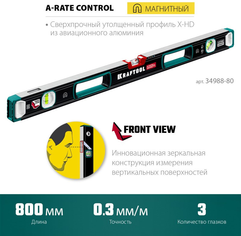 Сверхпрочный магнитный уровень KRAFTOOL A-RATE CONTROL 800 мм точность 0.3 мм/м, с зеркальным глазком [34988-80]