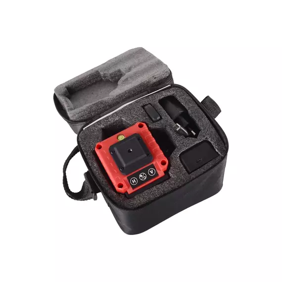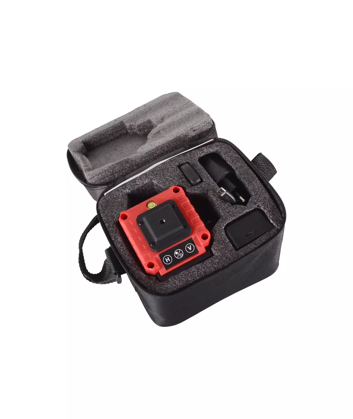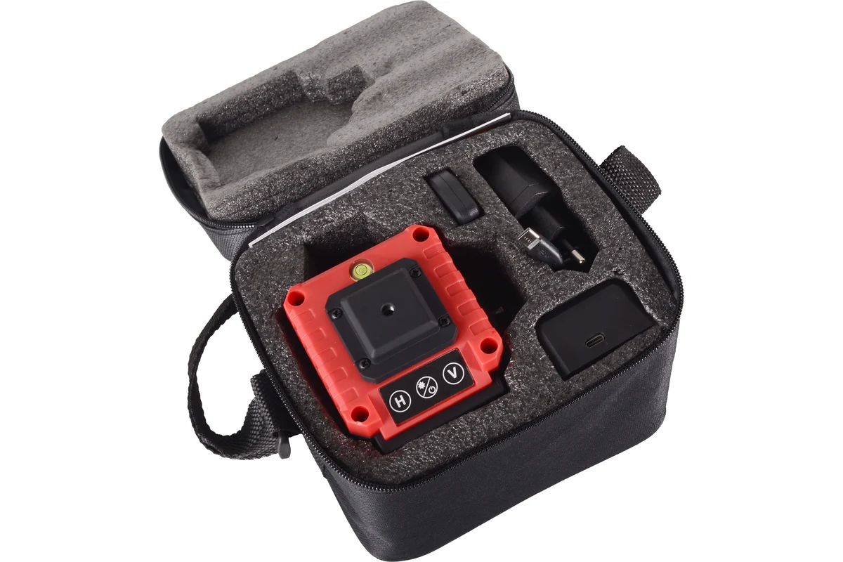 Лазерный построитель плоскостей оснащен системой самовыравнивания с диапазоном ±4°. Процесс выравнивания происходит автоматически и занимает не более 3 сек. Точность измерений составляет ±1,5 мм на расстоянии 5 м.