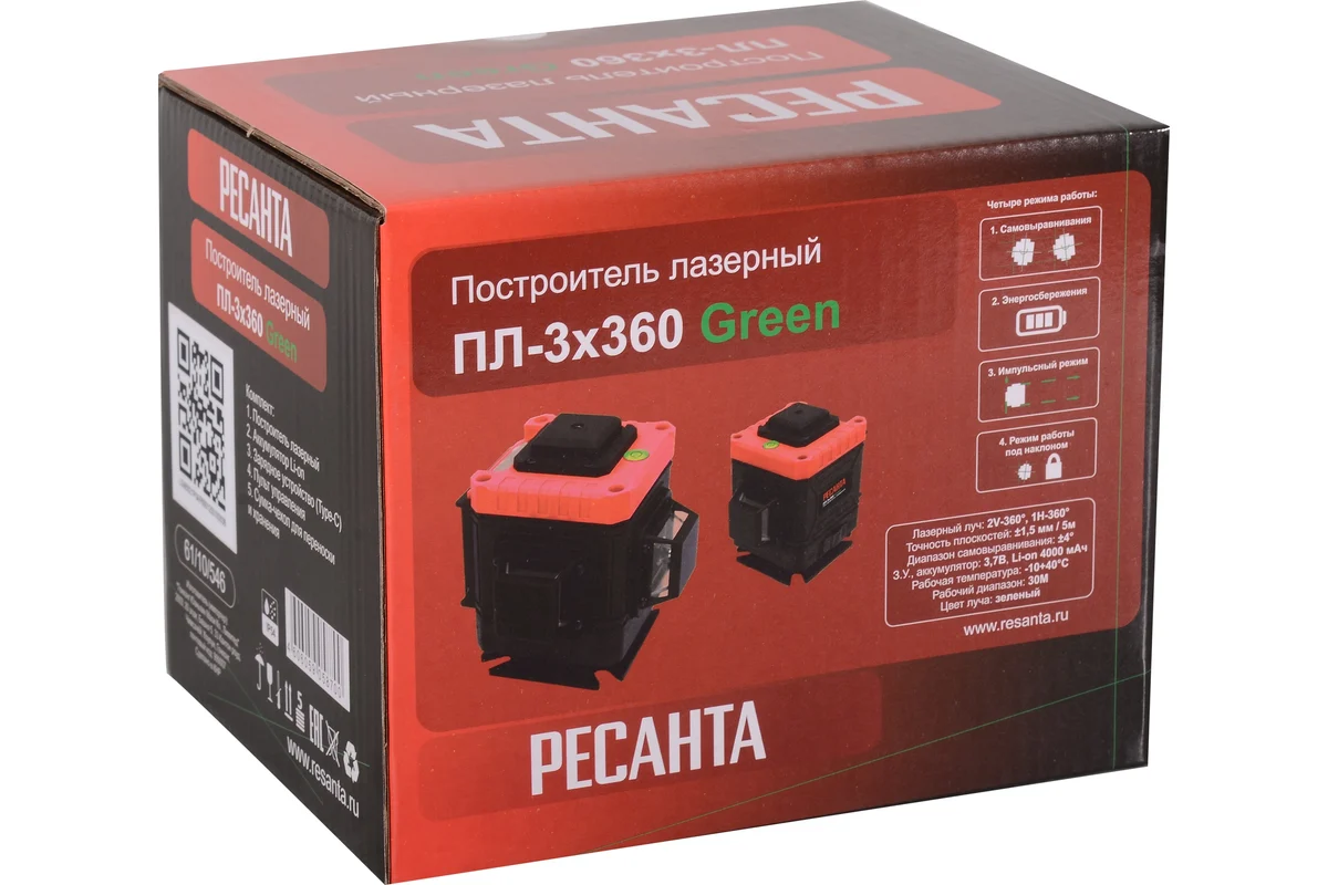 Построитель лазерный РЕСАНТА ПЛ-3Х360 Green