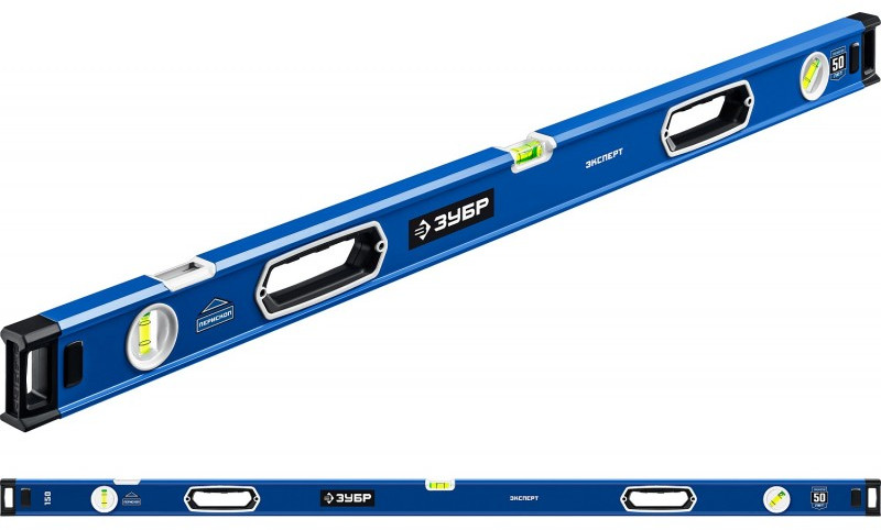 Мощный уровень Зубр Эксперт 1500 мм с рукоятками и зеркальным глазком [34570-150]