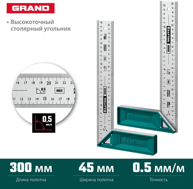 Высокоточный столярный угольник KRAFTOOL GRAND 300 мм [3439-30]