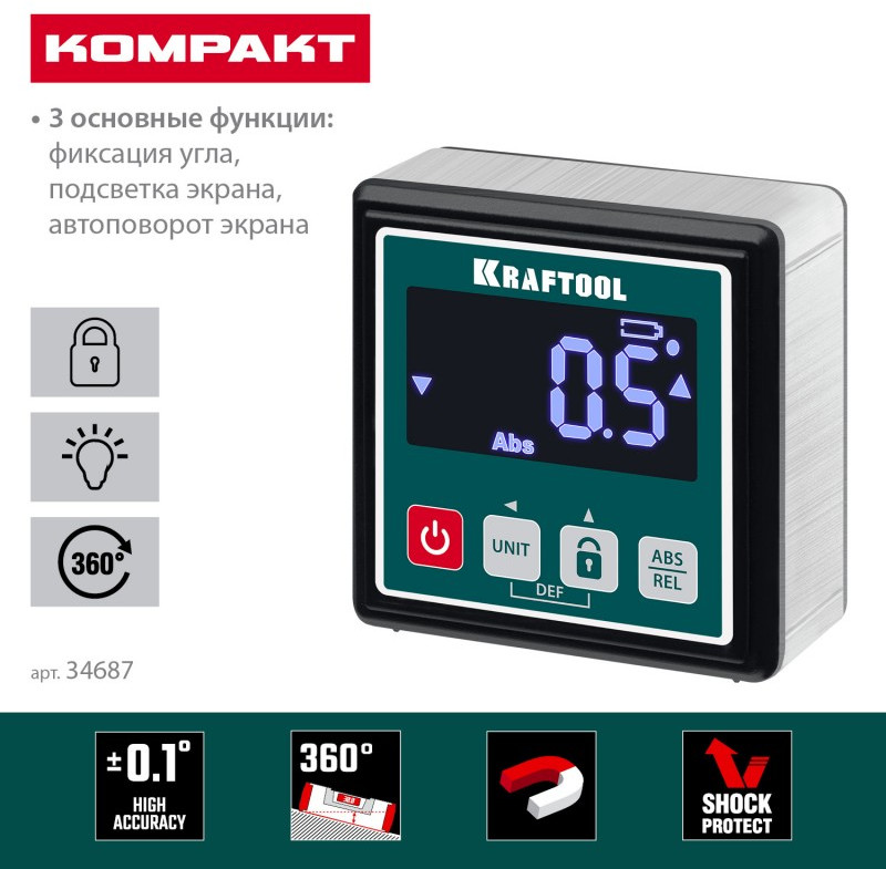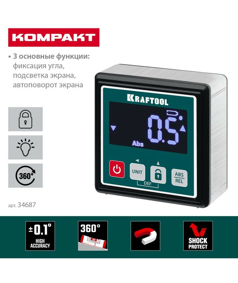 Уровень-уклономер электронный KRAFTOOL KOMPAKT 4 х 90 С точность 0.1 [34687]