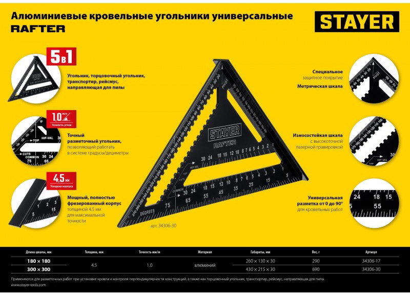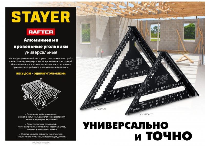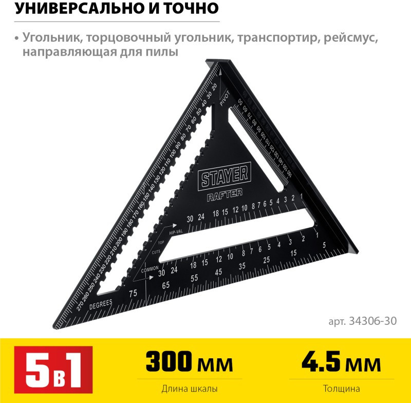 Универсальный кровельный угольник STAYER 305 мм 5-в-1 [34306-30]