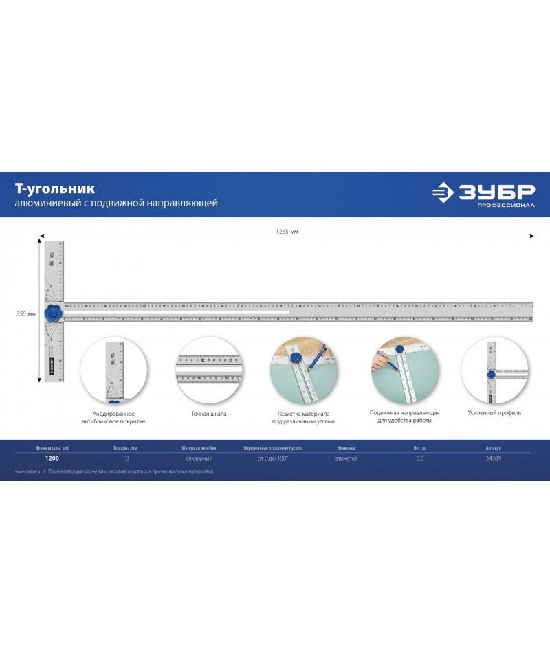 Т-угольник алюминиевый Зубр Профессионал 34389
