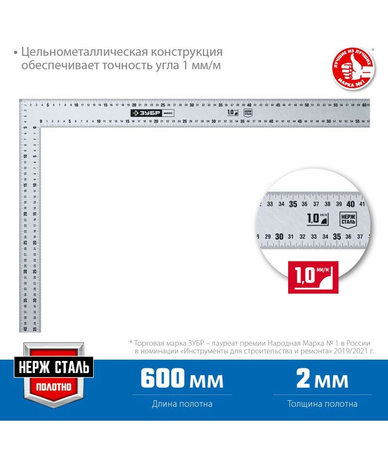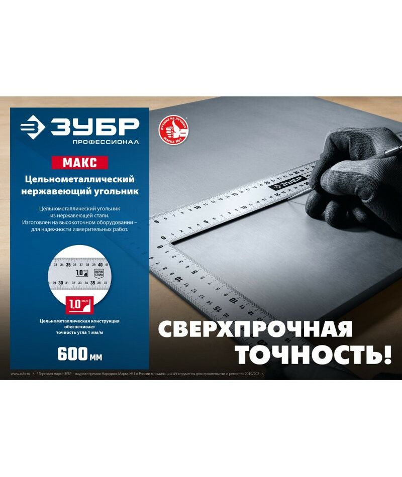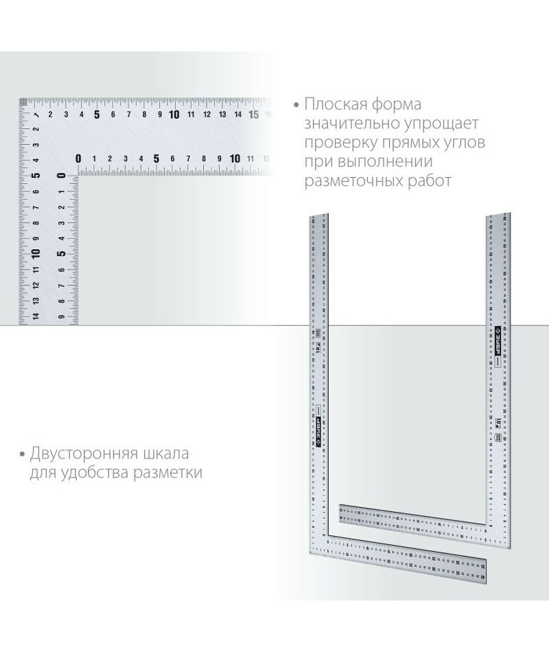 - Цельнометаллическая конструкция рукоятки и полотна обеспечивает точность угла 1 мм/м