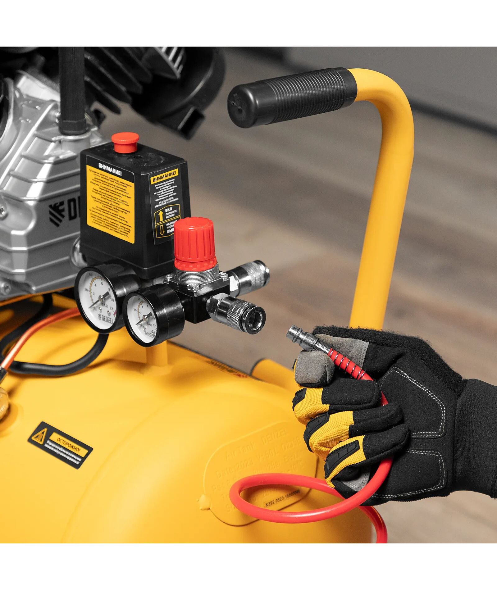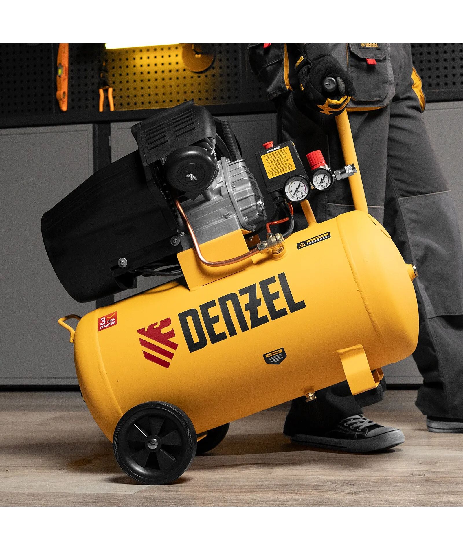 | Особенности | Мощный мотор и двухцилиндровая конструкция - высокая производительность. Ресивер 50 литров - работа с пневмоинструментом со средним уровнем потребления воздуха. Защита от перегрева обмоток мотора. Защита от перегрузки. Колеса и амортизирующие опоры - для снижения вибрации. Регулятор давления и 2 м |