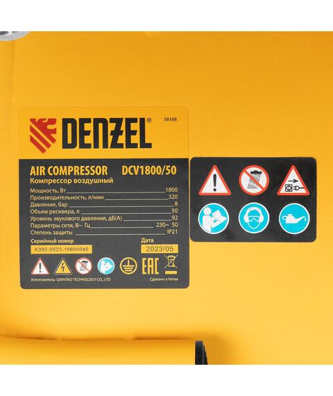 Компрессор поршневой Denzel DCV1800/50 масляный 320л/мин 50л 1800Вт желтый [58168]