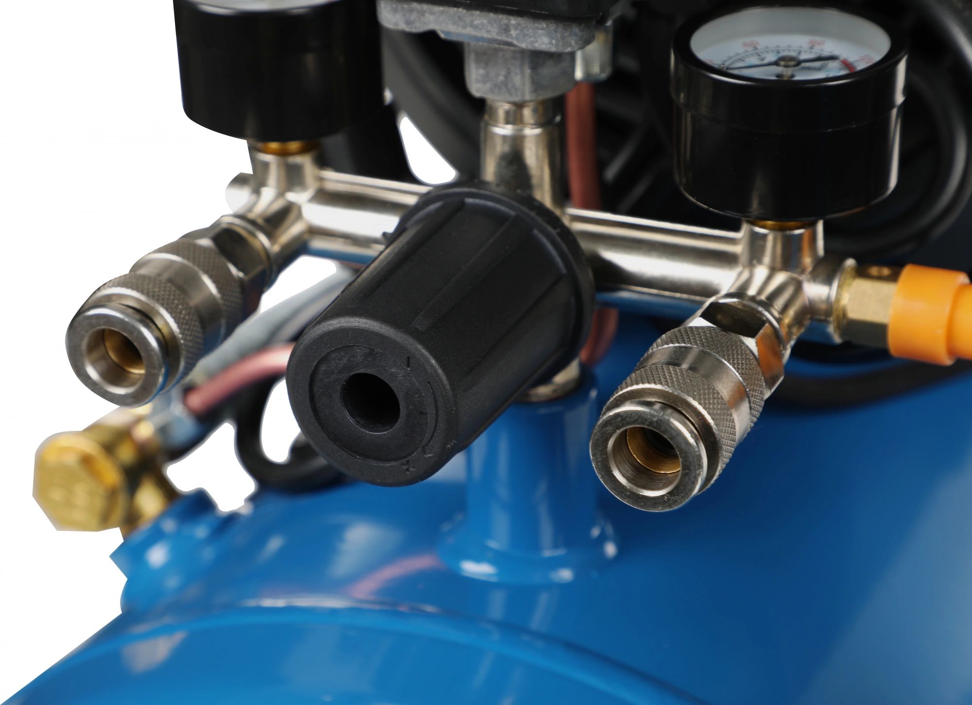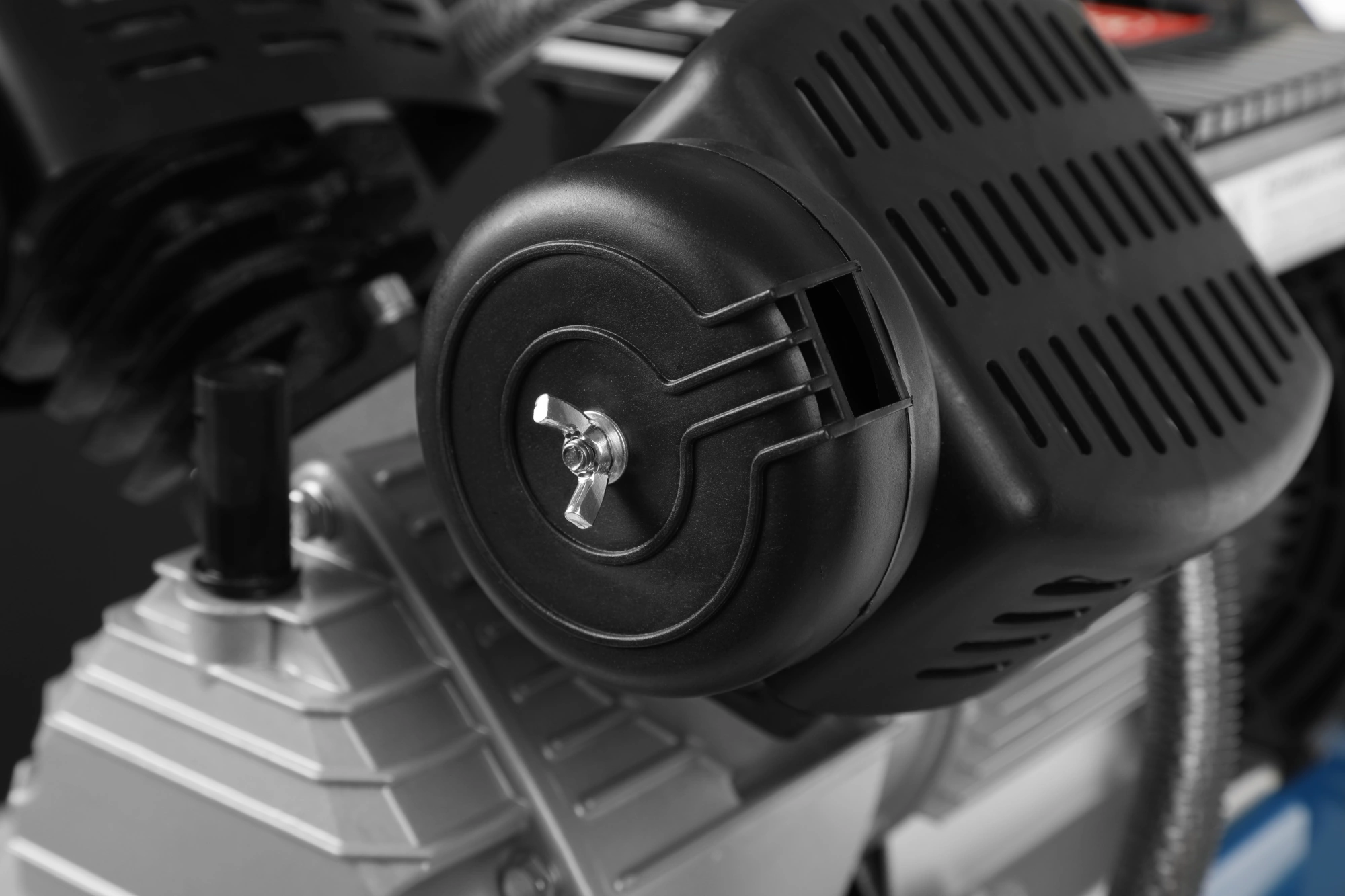 | Особенности | Чугунные цилиндры и алюминиевые головки обеспечивают хороший отвод тепла. Полиуретановые затворы обратных клапанов. Защита от перегрева. Удобство транспортировки. Высокая производительность за счет двух цилиндров, установленных по V-образной схеме. |