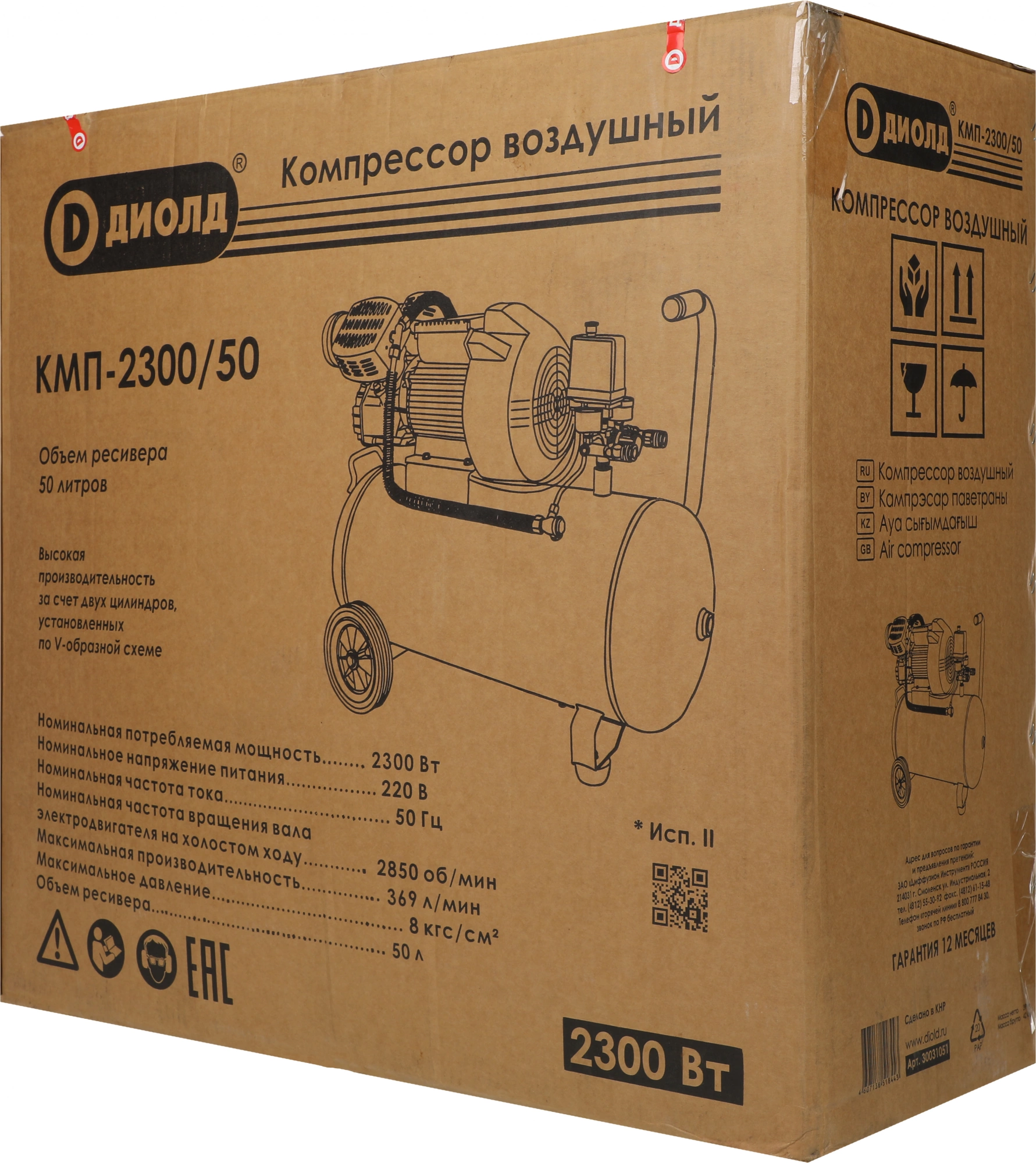 Компрессор ДИОЛД КМП-2300/50 поршневой масляный 369л/мин 50л 2300Вт синий [30031051]