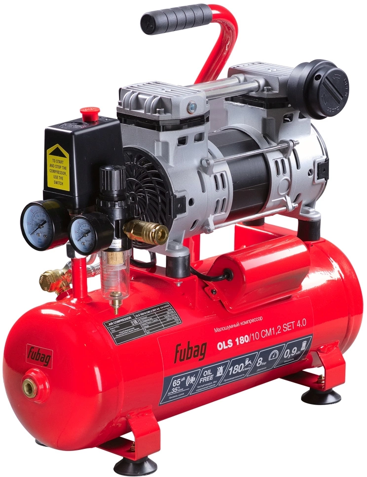 Компрессор поршневой Fubag OLS 180/10 CM1.2 Set 4.0 безмасляный 180л/мин 10л 900Вт красный/черный [646068]