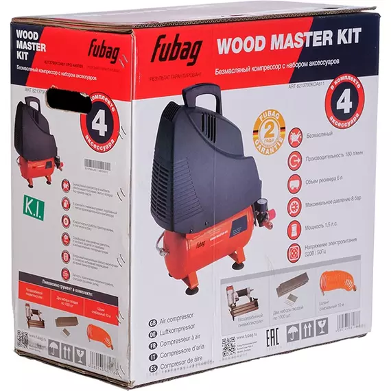 Компрессор Fubag Wood Master Kit 1.1 кВт, 8 бар, 180 л/мин, вес 13 кг [646035]
