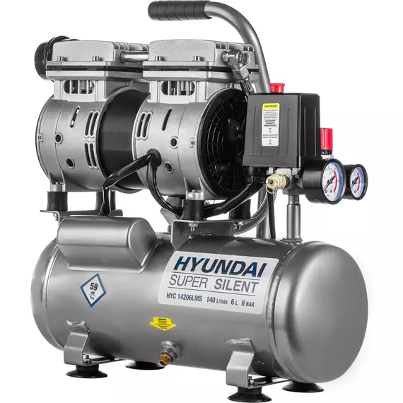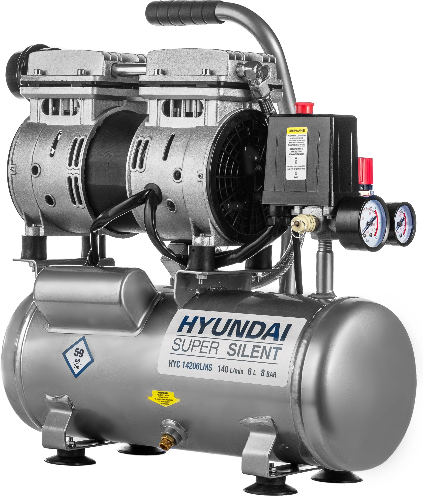 Компрессор поршневой Hyundai HYC 14206LMS безмасляный 140л/мин 6л 750Вт серебристый