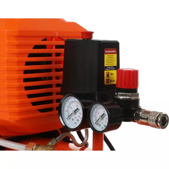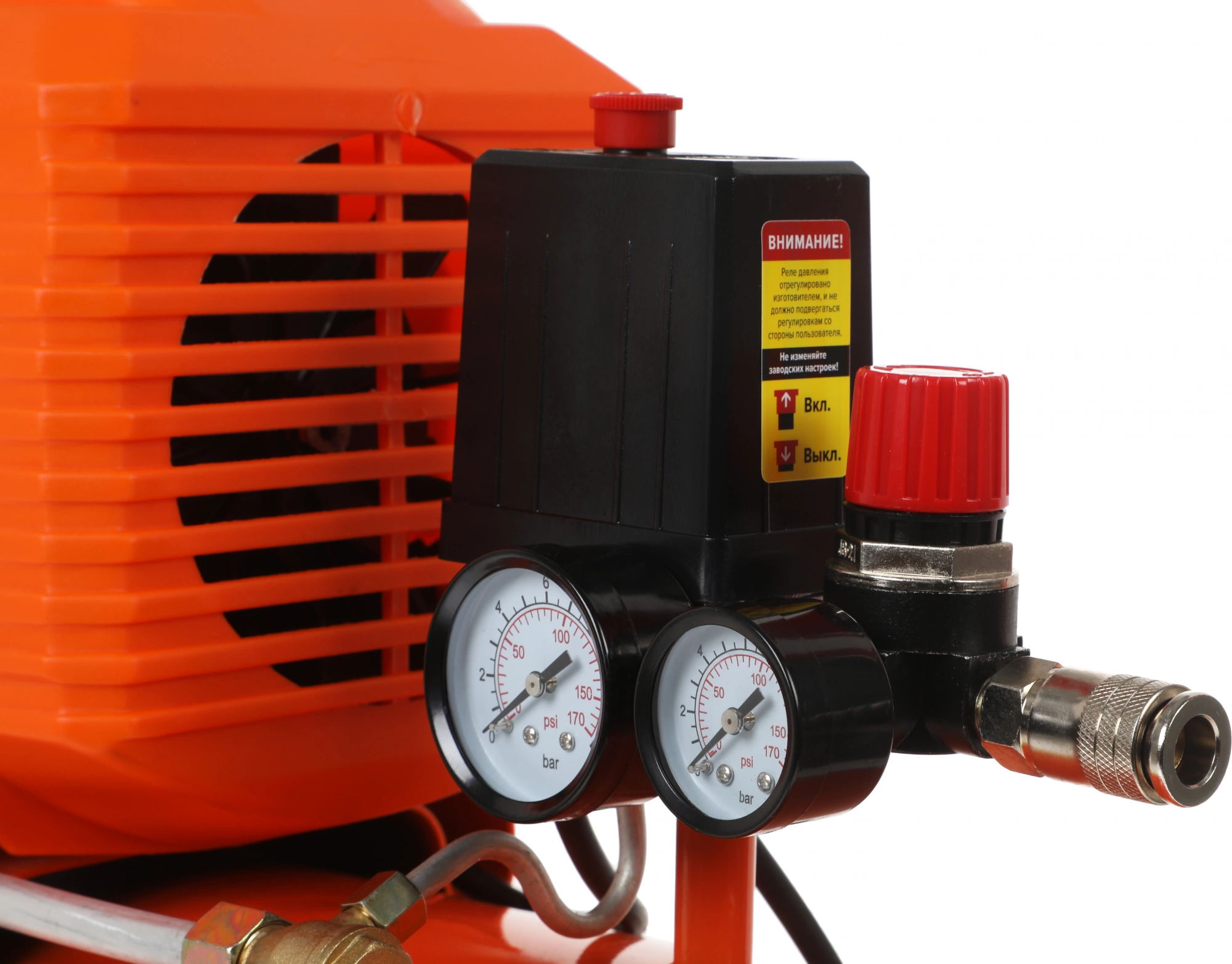 | Особенности | Цилиндр из литого чугуна обеспечивает продолжительную эксплуатацию. Предохранительный клапан защищает ресивер от повреждений и критических перегрузок. Транспортировка компрессора производится при помощи колес и ручки. |