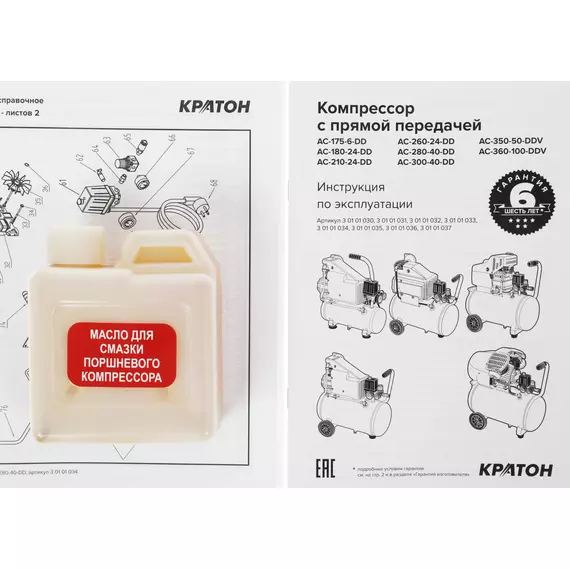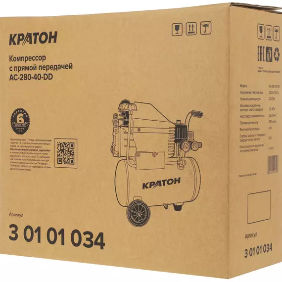 Компрессор КРАТОН Кратон AC-280-40-DD масляный 280л/мин 40л 2000Вт оранжевый [01 01 034]