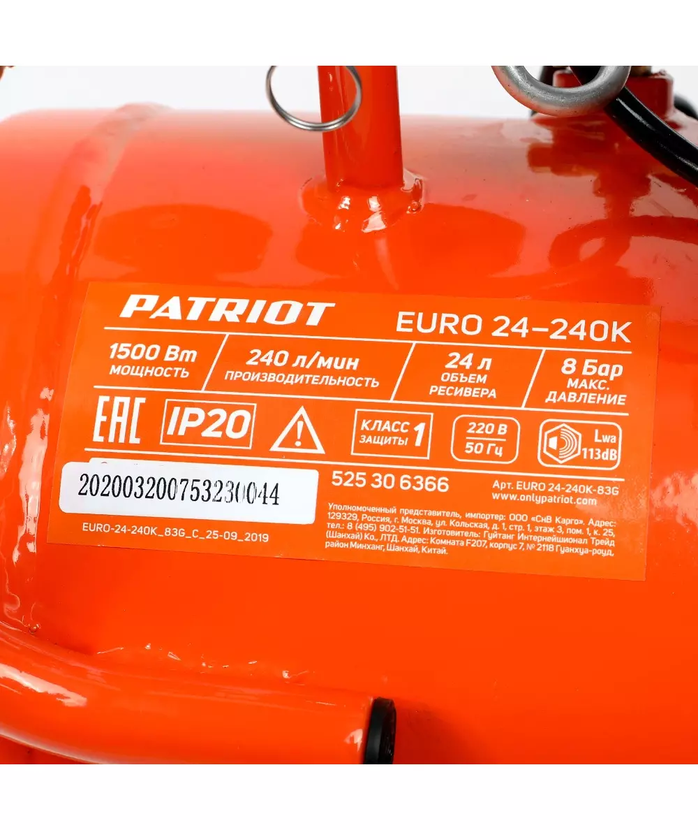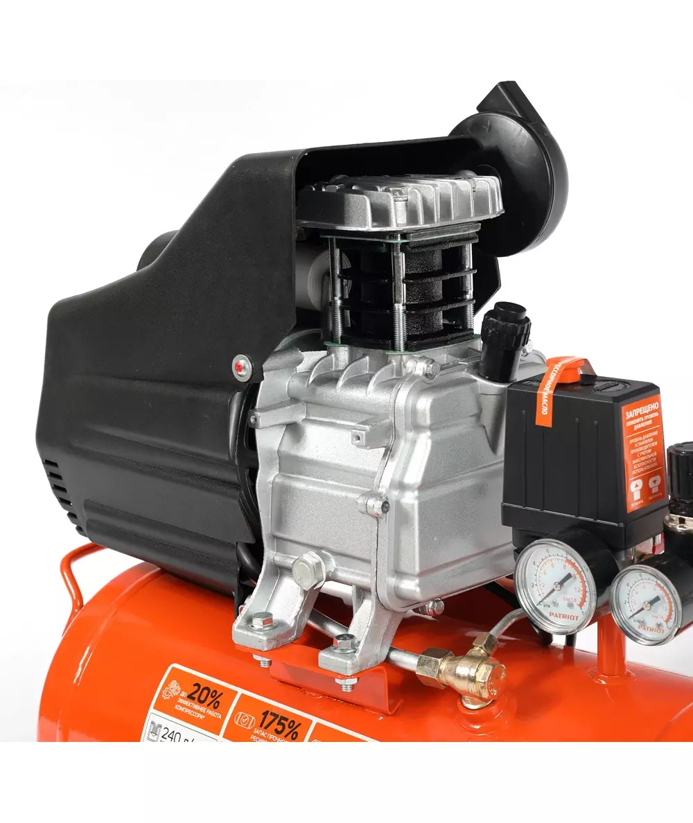 Компрессор поршневой Patriot Optima Euro 24-240K2 масляный 240л/мин 24л 1500Вт оранжевый/черный [525302118]