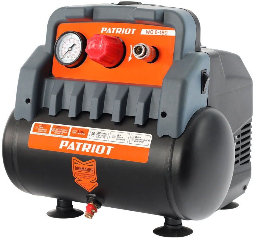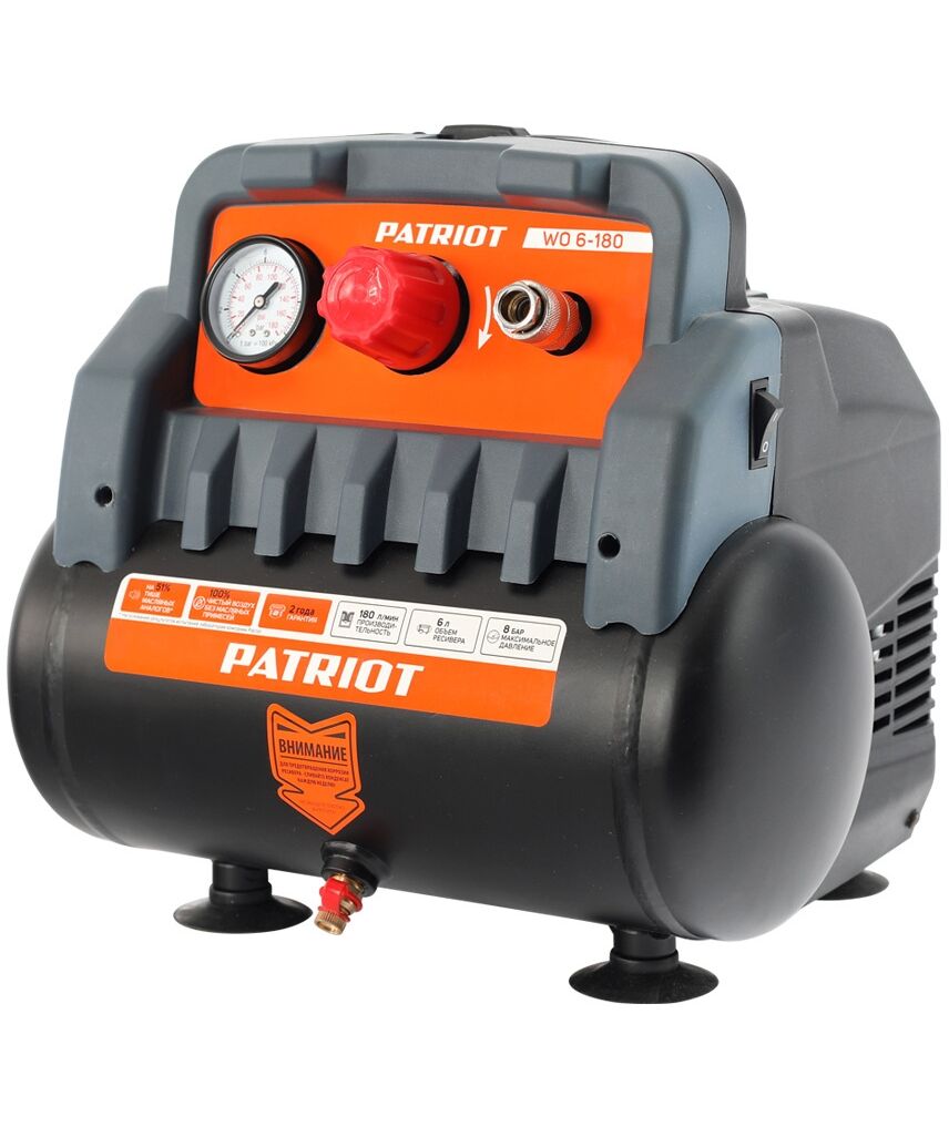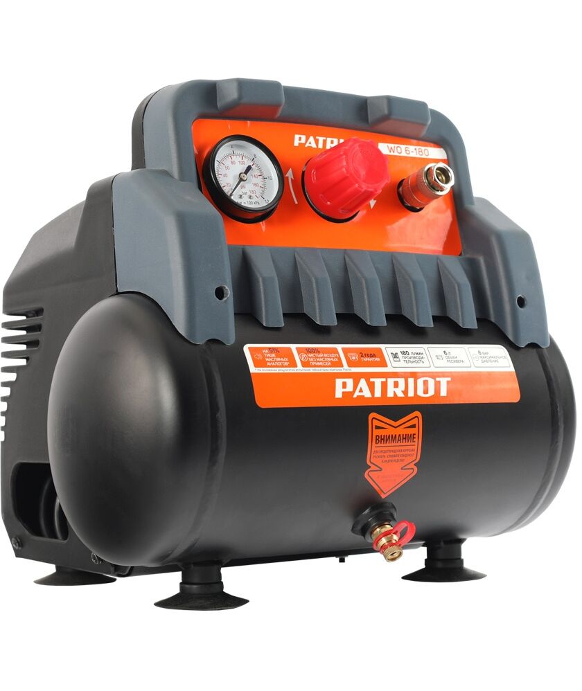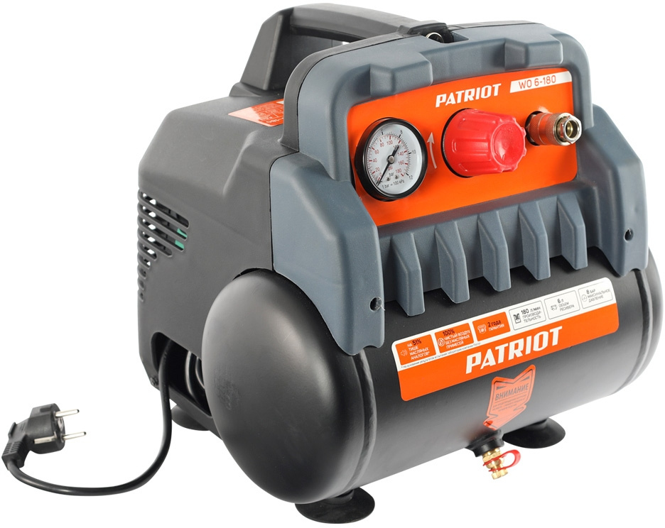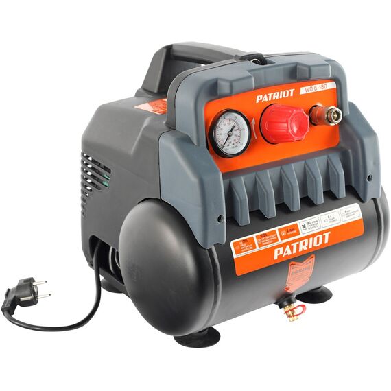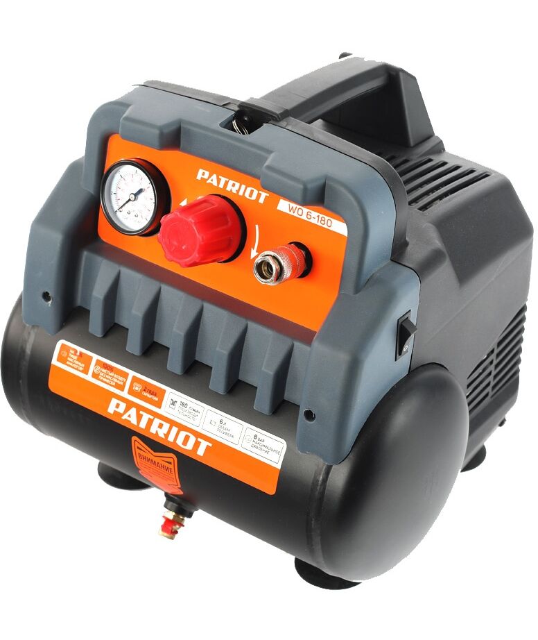 Компрессор поршневой Patriot WO 6-180 безмасляный 180л/мин 6л 1100Вт черный/оранжевый [525301910]
