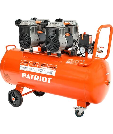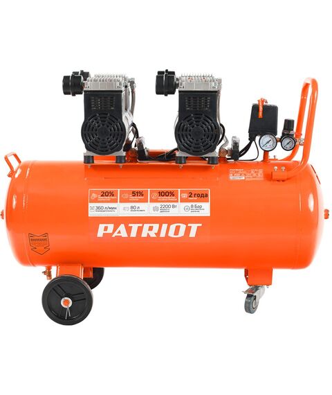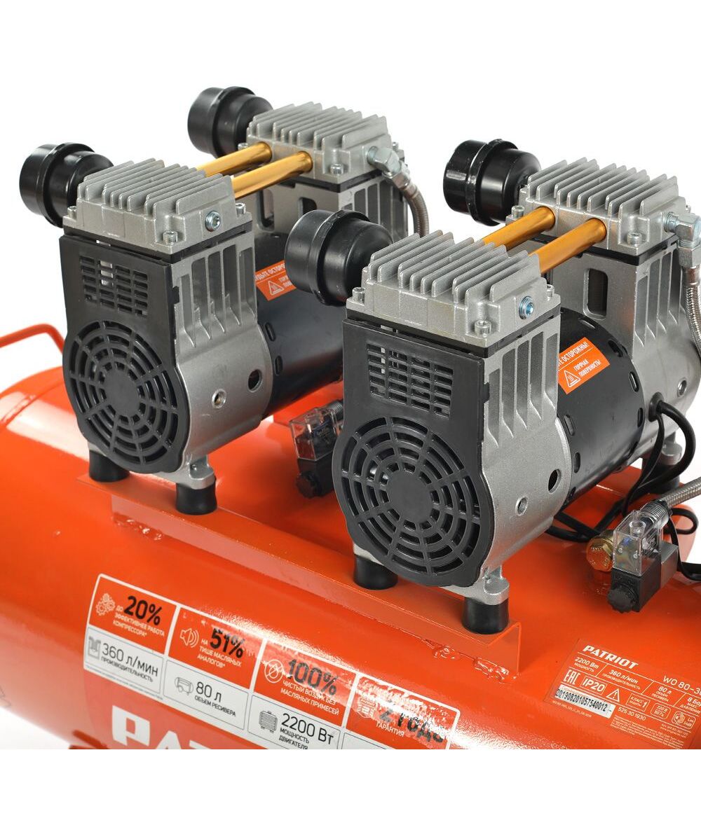 Компрессор поршневой Patriot WO 80-360 безмасляный 80л 2200Вт оранжевый [525301930]