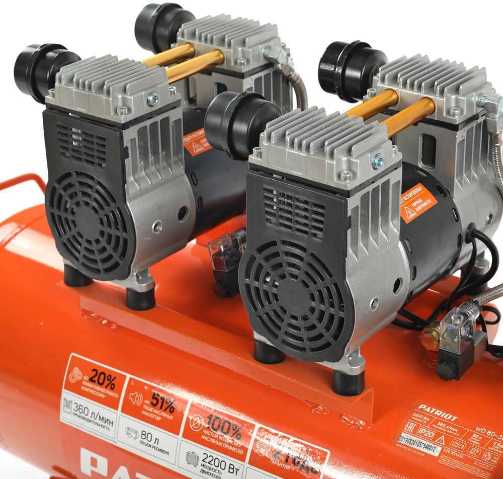 Компрессор поршневой Patriot WO 80-360 безмасляный 80л 2200Вт оранжевый [525301930]