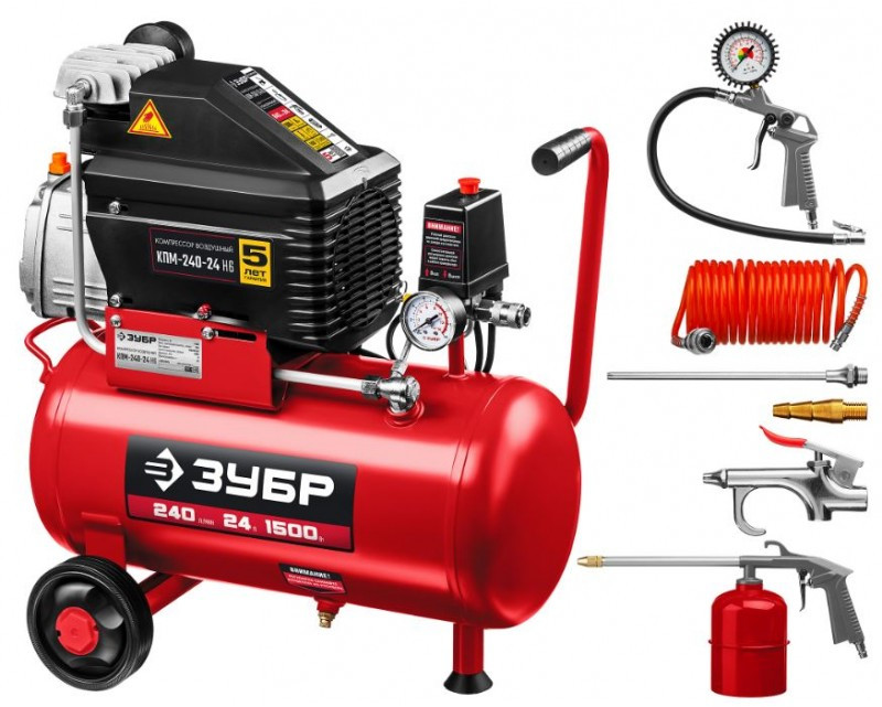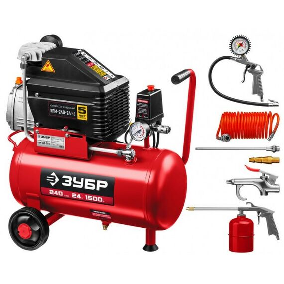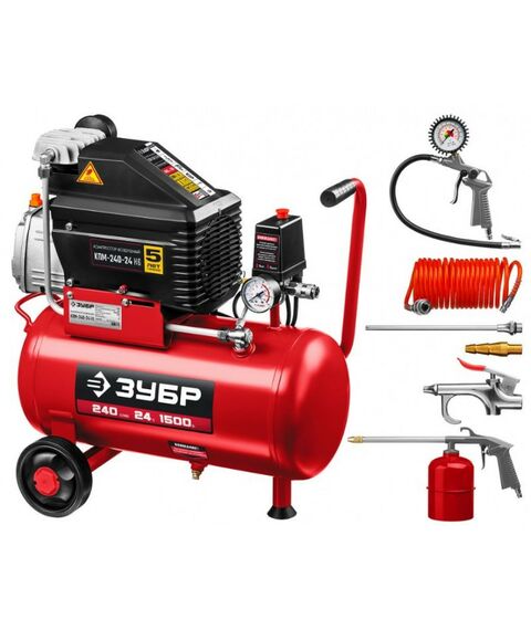 Компрессор воздушный с набором аксессуаров Зубр КПМ-240-24 Н6 240 л/мин, 24 л, 1500 Вт