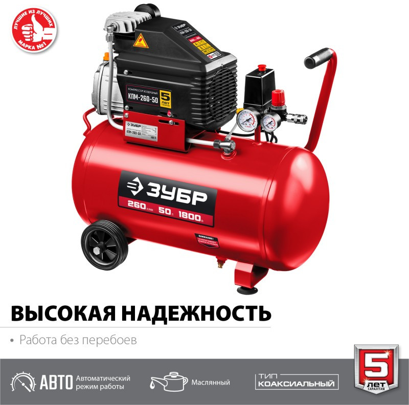 Компрессор воздушный Зубр КПМ-260-50 260 л/мин, 50 л, 1800 Вт