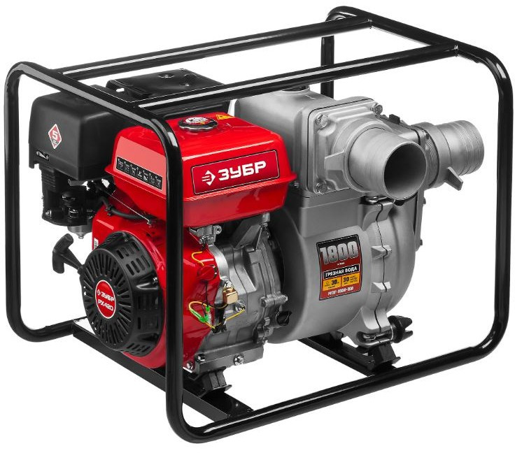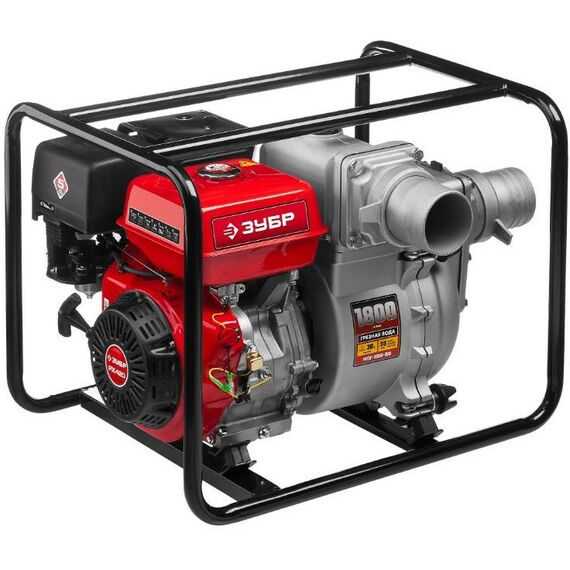 Мотопомпа бензиновая Зубр МПГ-1800-100 для грязной воды, 1800 л/мин (108 м3/ч), патрубки 100 мм, напор 30 м, всасывание 8 м