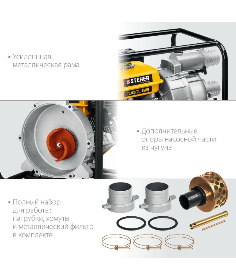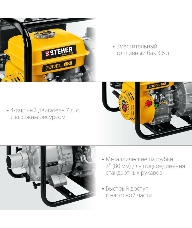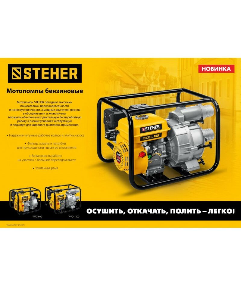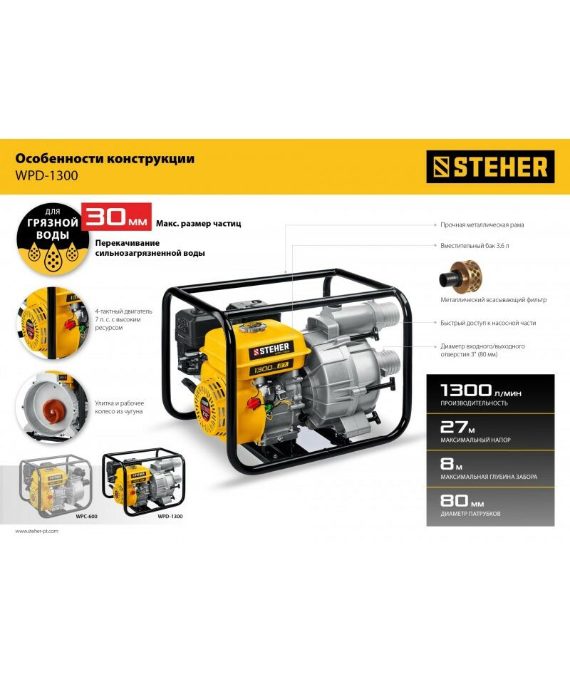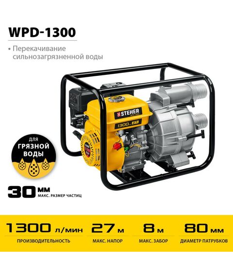Мотопомпа бензиновая для грязной воды STEHER WPD-1300 1300 л/мин