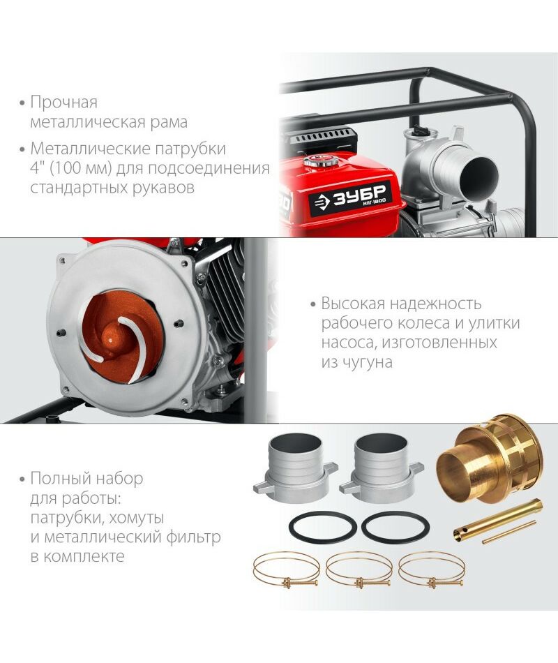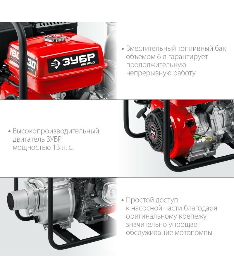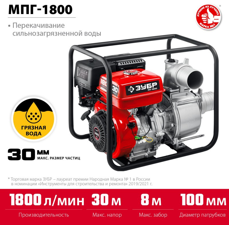 Мотопомпа бензиновая для грязной воды Зубр МПГ-1800 1800 л/мин