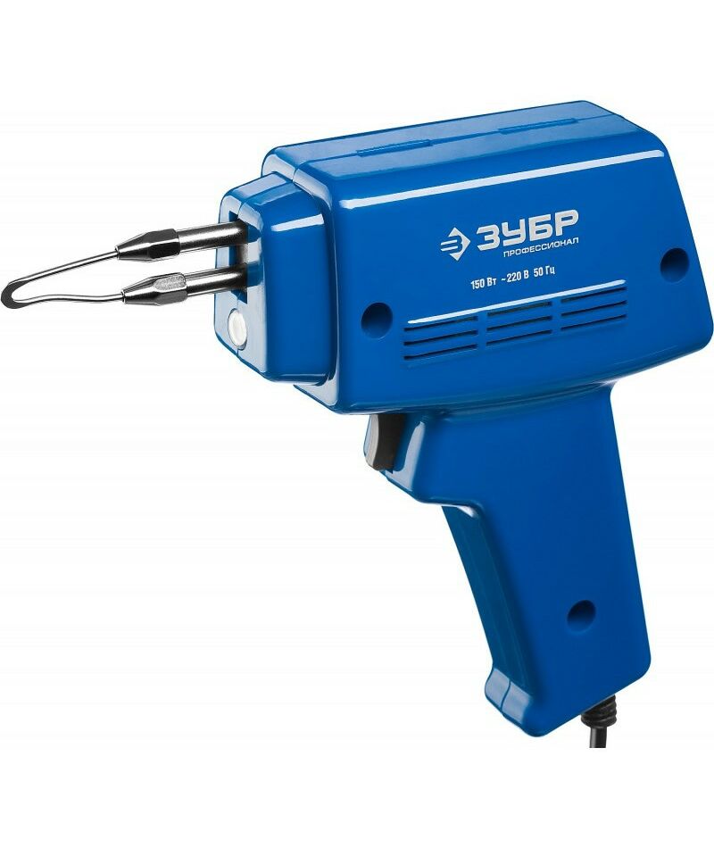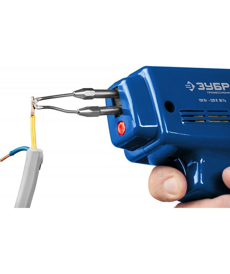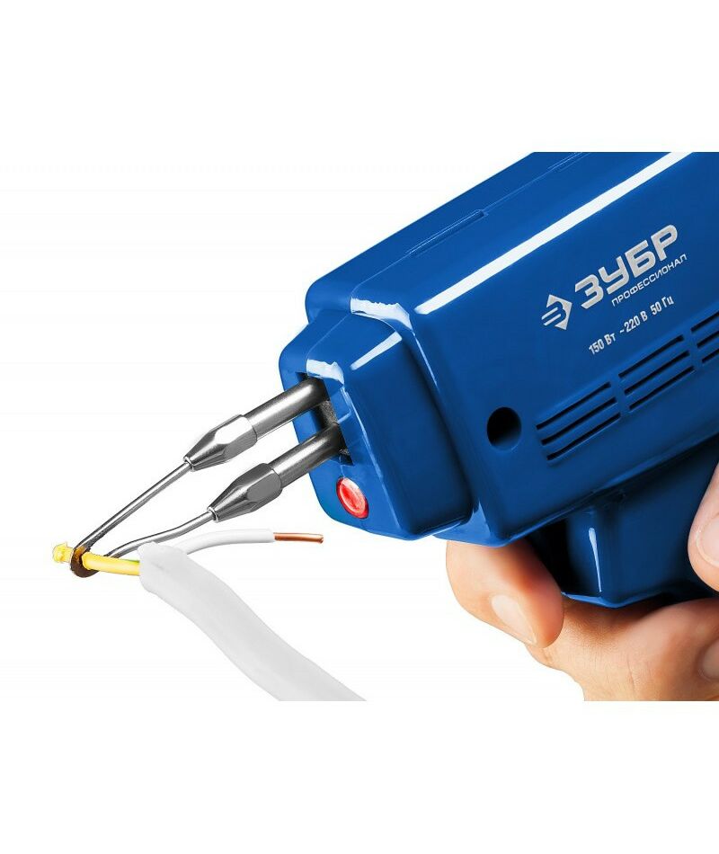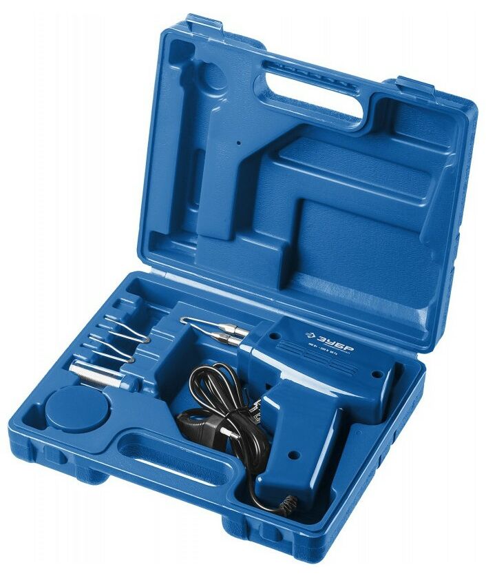 Импульсный паяльник в наборе Зубр 55412-H4 150Вт, нагрев 6 сек., канифоль, припой, 2 сменных жала, в кейсе
