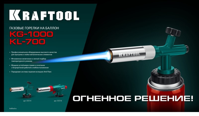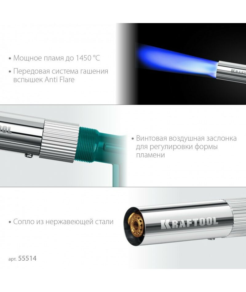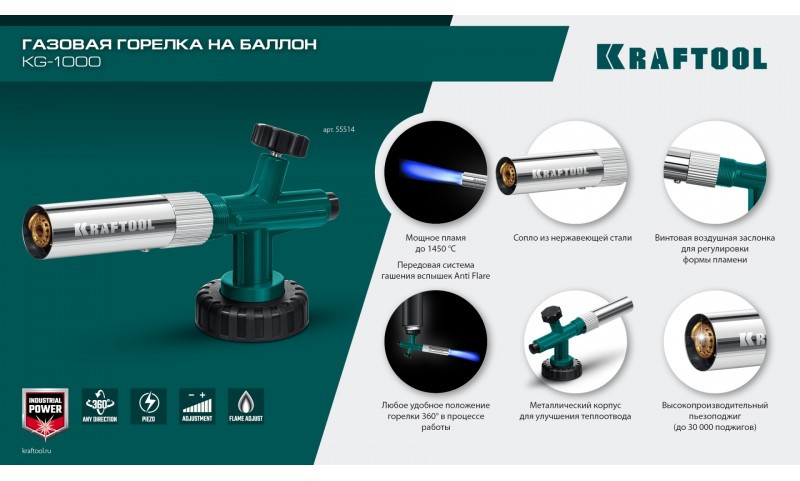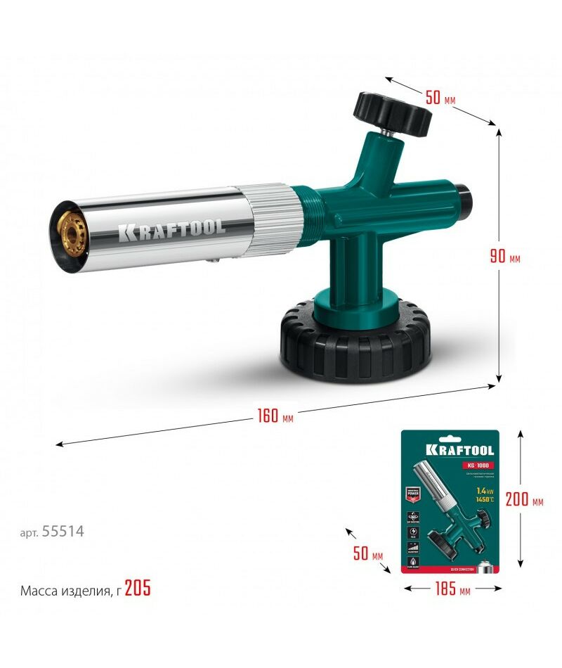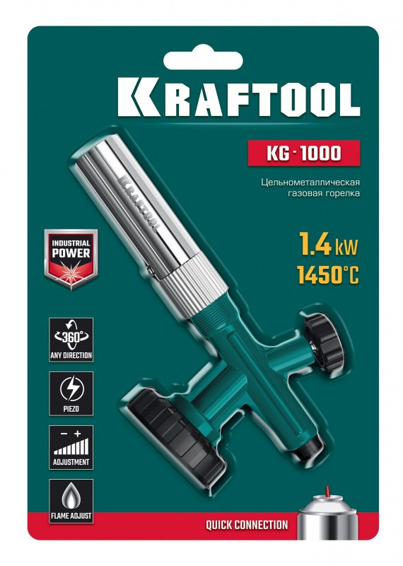Газовая горелка на баллон KRAFTOOL KG-1000 цельнометаллическая с пьезоподжигом [55514]