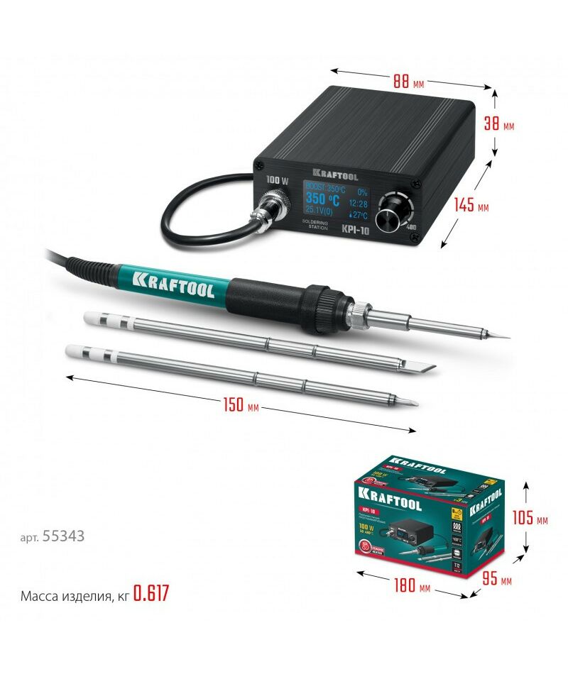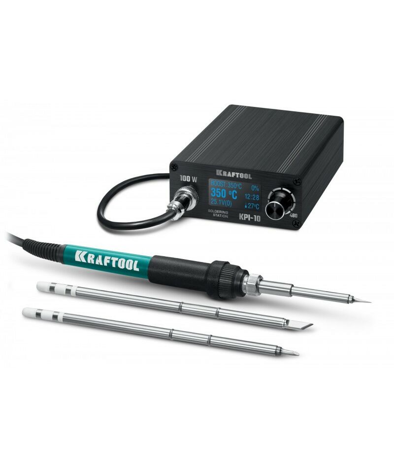 программируемая паяльная станция KRAFTOOL KPI-10 50 - 480°C, 100 Вт, 3 жала Т12 [55343]
