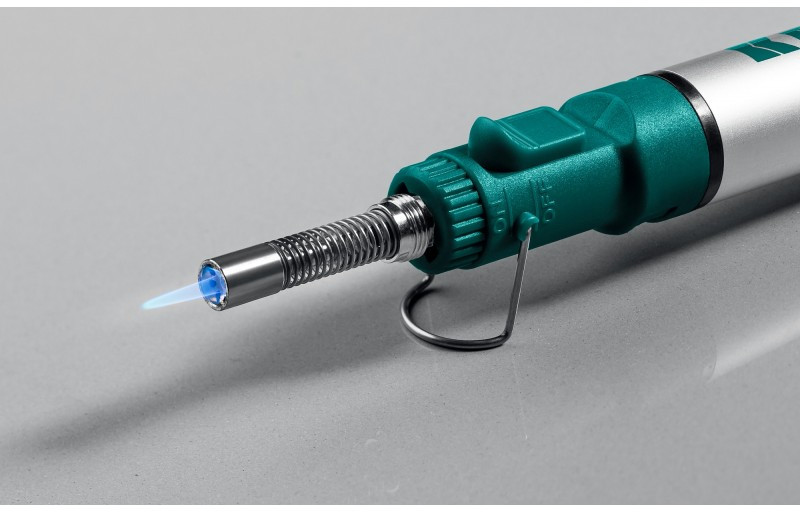 Газовый паяльник представляет собой горелку с набором насадок. Предназначен для плавки и сварки пластиковых частей, нагрева малых металлических частей и плавки металла с низкой температурой плавления, ремонта ювелирных изделий, сгибания тонких стеклянных трубок, пайки медных трубок, сварки электронных и электротехнических элементов, где очень важна точность и надежность. Изделие обладает возможностью выбора температурного режима, что позволяет максимально соответствовать требованиям любой работы. Этот легкий в обращении инструмент, работающий на бутане. Универсальная горелка имеет встроенный клапан для заправки. Заправляется от баллона с бутаном для газовых зажигалок. Создает устойчивое пламя температурой до 1300 °С.