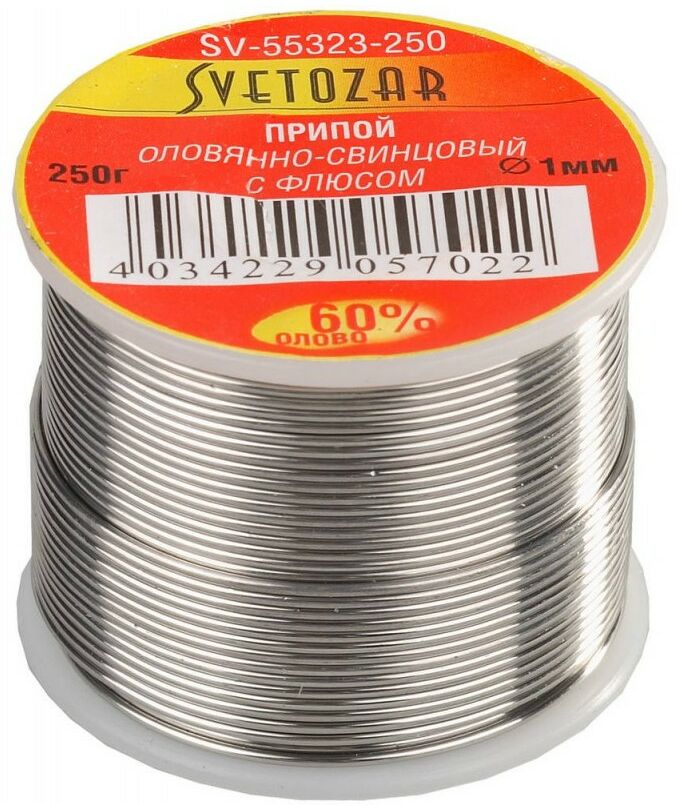 Припой СВЕТОЗАР СВЕТОЗАР ПОС61.1 мм 250г, трубка с флюсом, катушка [SV-55323-250]