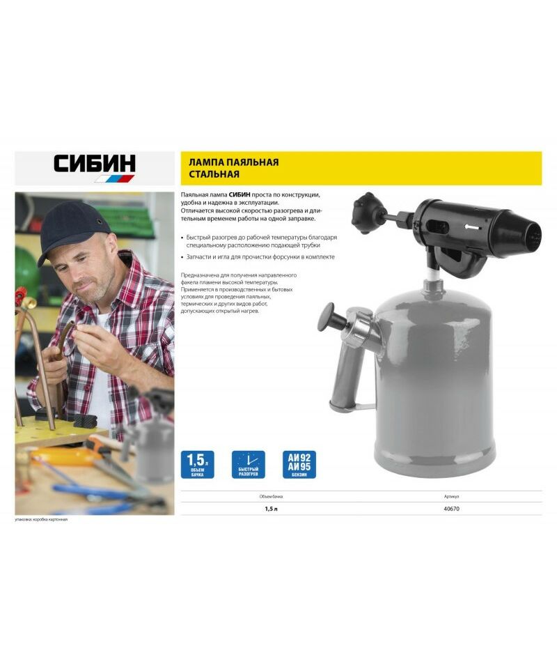 Паяльная лампа СИБИН 1.5 л стальной эжектор [40670]