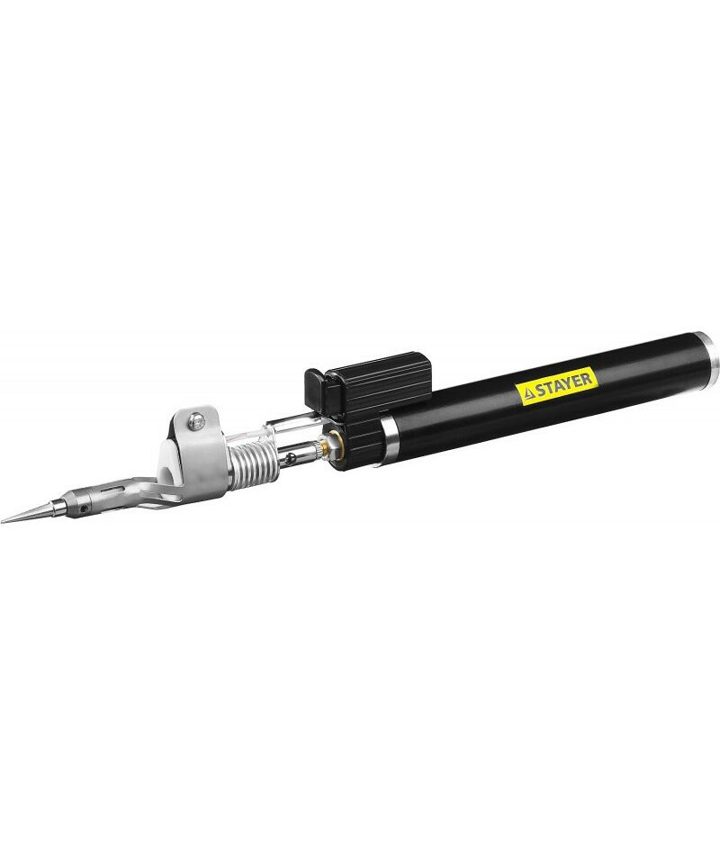 Газовый паяльник STAYER PS400 45 Вт, 1200°С, в наборе: 5в1, пьезоподжиг, горелка, фен, 4 жала [55505-H6]