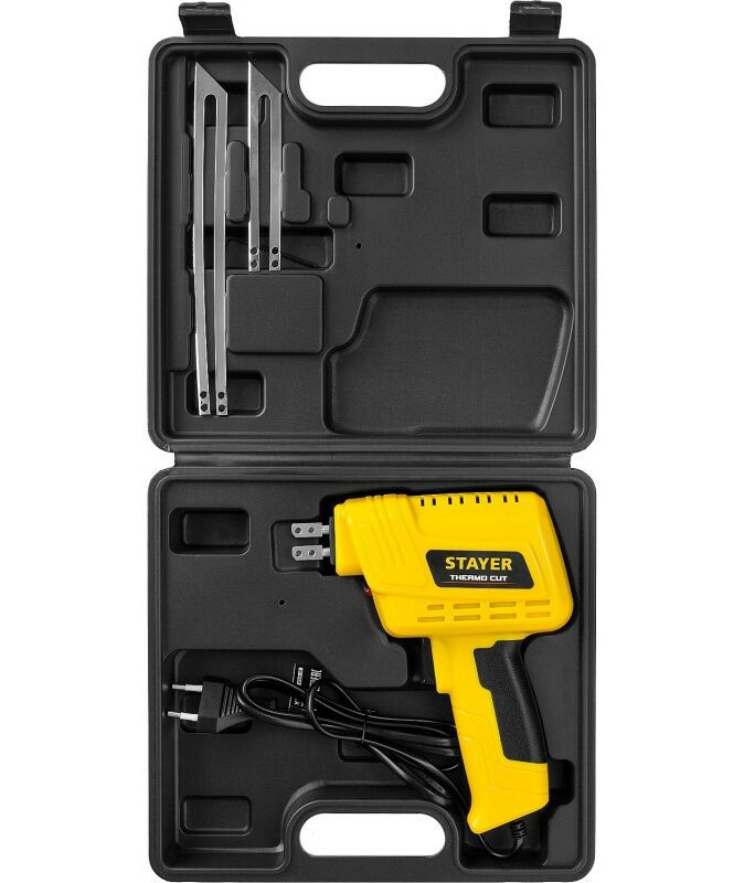 Прибор для терморезки STAYER Thermo cut 150 Вт в наборе 2 ножа, быстрый рез пенопласта + пластика
