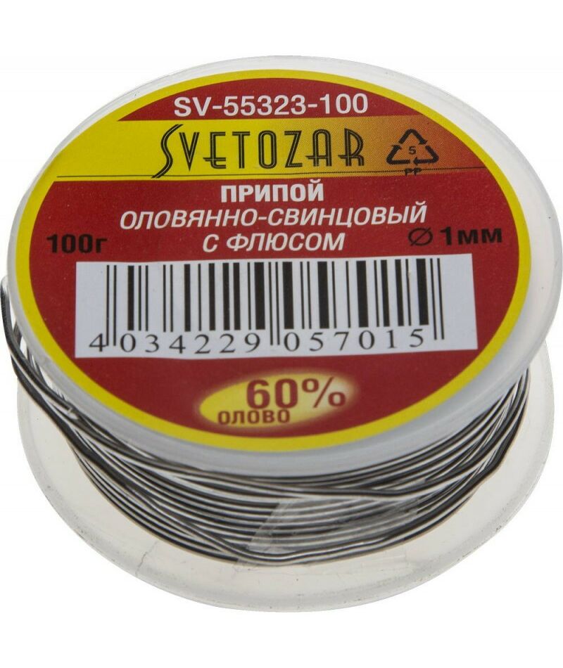 Припой СВЕТОЗАР ПОС 61 1мм, 100г, трубка с флюсом, катушка [SV-55323-100]