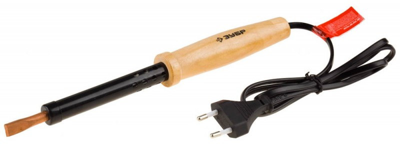 Электропаяльник с деревянной рукояткой Зубр 100Вт клин [55405-100]